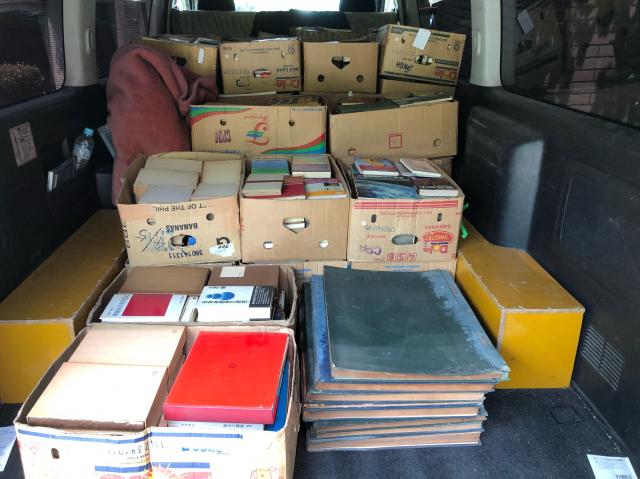 本を箱に詰めて車に積み込みをすると50箱ないぐらいの量でした。
